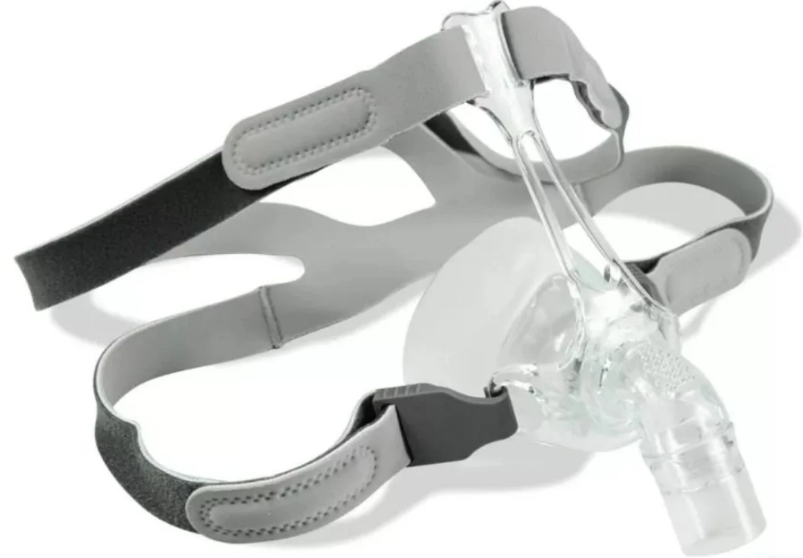A máscara nasal conta com pequenos orifícios no cotovelo, que permite uma eficiente ventilação, auxilia na respiração e regula a pressão enquanto a máscara mantém uma vedação efetiva.