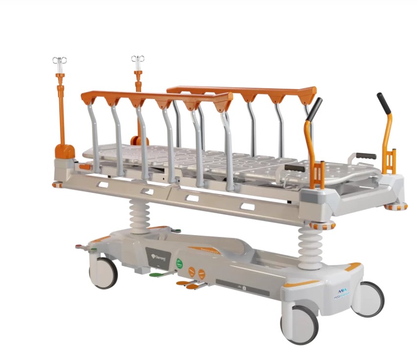 A Maca Hospitalar Metahospitalar MT 416 Diamond Care se destaca no ambiente hospitalar por seu design moderno e funcional, combinando a robustez necessária com um visual clean em tons de branco e laranja/ocre. Projetada para oferecer a máxima segurança e conforto ao paciente, esta maca é a escolha ideal para diversas aplicações, desde a transferência de pacientes até procedimentos de emergência e recuperação.