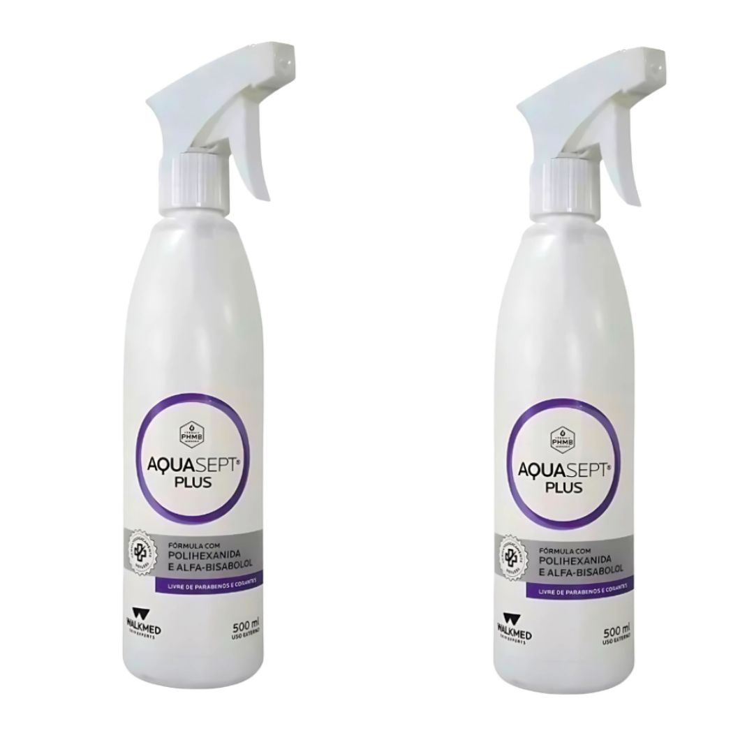O Aquasept Plus é um antisséptico de uso tópido formulado com Polihexanida PHMB 0,2% e Alfa-Bisabolol agente antimicrobiano de amplo espectro que combate vírus, bactérias e fungos. Solução aquosa de Limpeza de adesão incolor, hidratante e absorvente para feridas