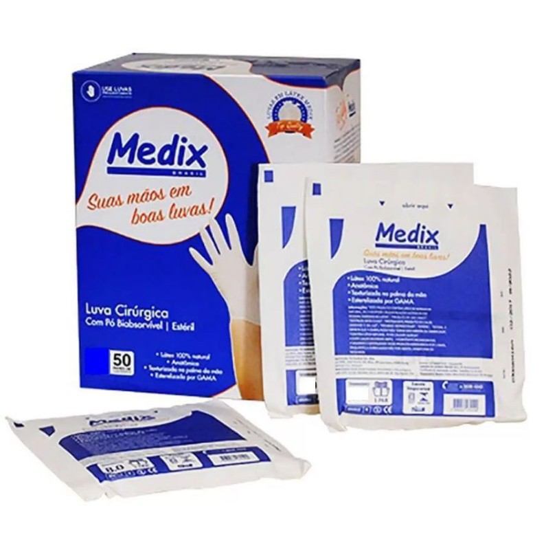Caixa C/50 Pares de Luva Cirúrgica 6,5 Estéril Látex com Pó - Medix