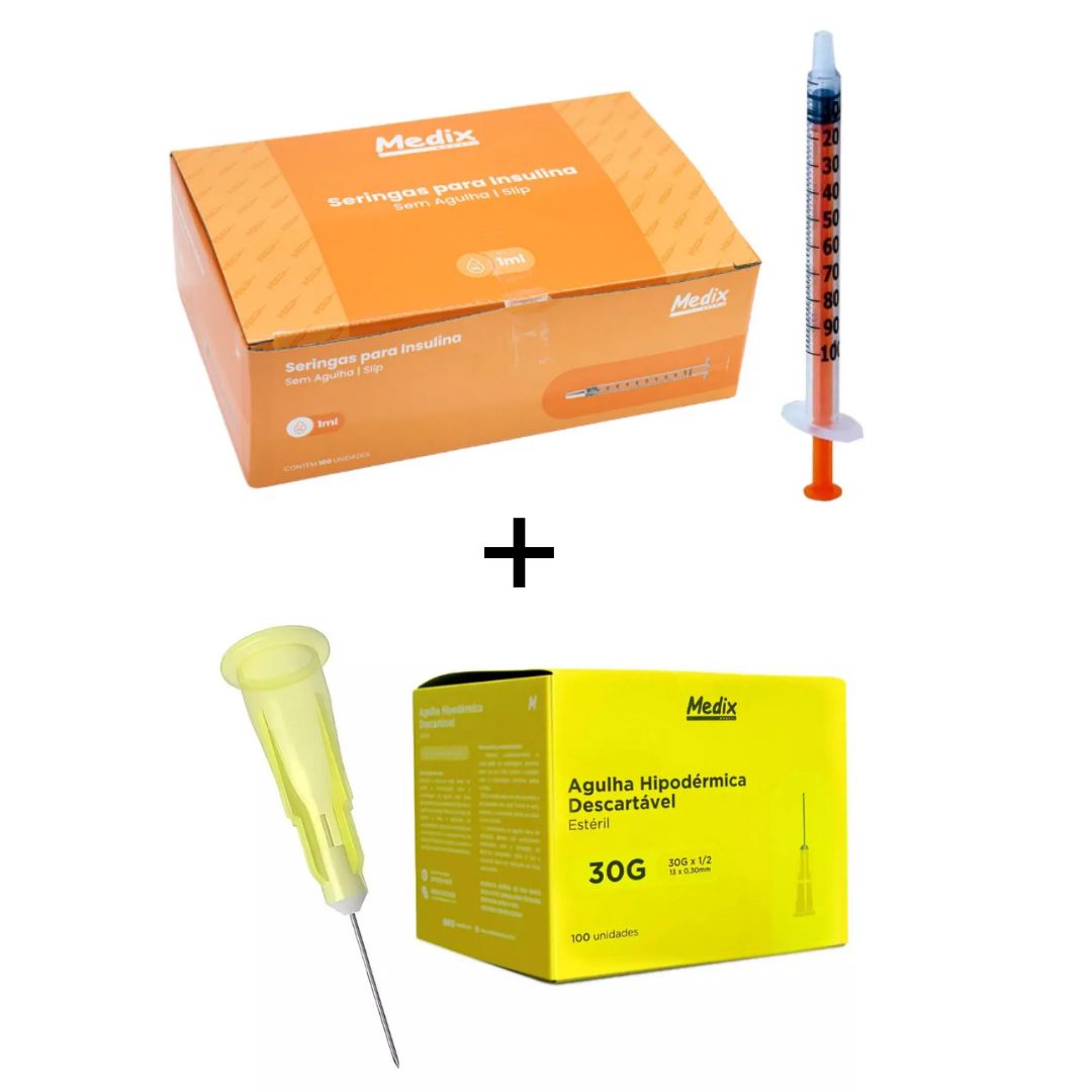Embalagem: 01 caixa de Seringa de insulina 1ml bico slip + 01 caixa de agulhas 13x0,30