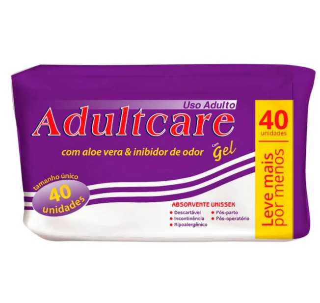 Os absorventes Adultcare são produtos geriátricos unissex projetados para gerenciar a incontinência urinária, variando de absorção leve a intensa, e são adequados para uso no pós-parto e pós-operatório.