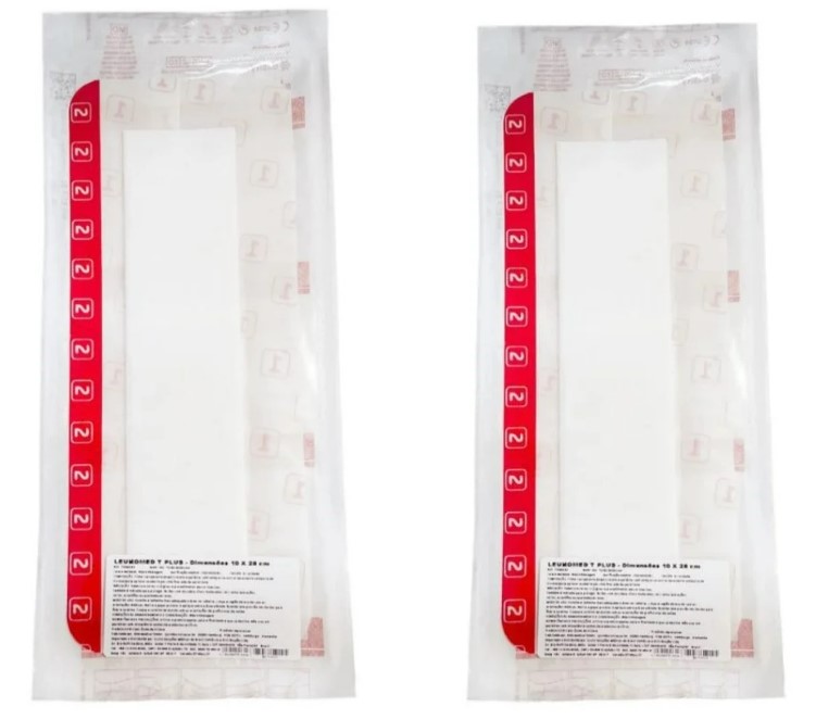 Leukomed T Plus é um curativo adesivo pós opertatório fino e transparente de poliuretano e poliéster com um almofada central absorvente composta de viscose/polipropileno recoberta por uma fina rede de polietileno.